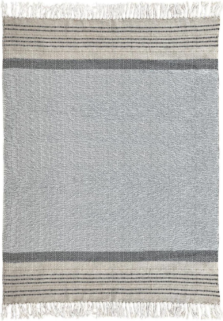 Bawełniany Koc Ines Szary Krem Paski Bawełniany koc z kolekcji Ines w odcieniach beżu, kremu, szarości i antracytu z delikatnym, ciekawym plecionym wzorem o elementach etnicznych typu zygzaki i romby. Krańce zakończone frędzelkami. ➡️ Opis wzoru i kolorystyki ⬅️ Koc - pled z kolekcji INE ze wzorem …
