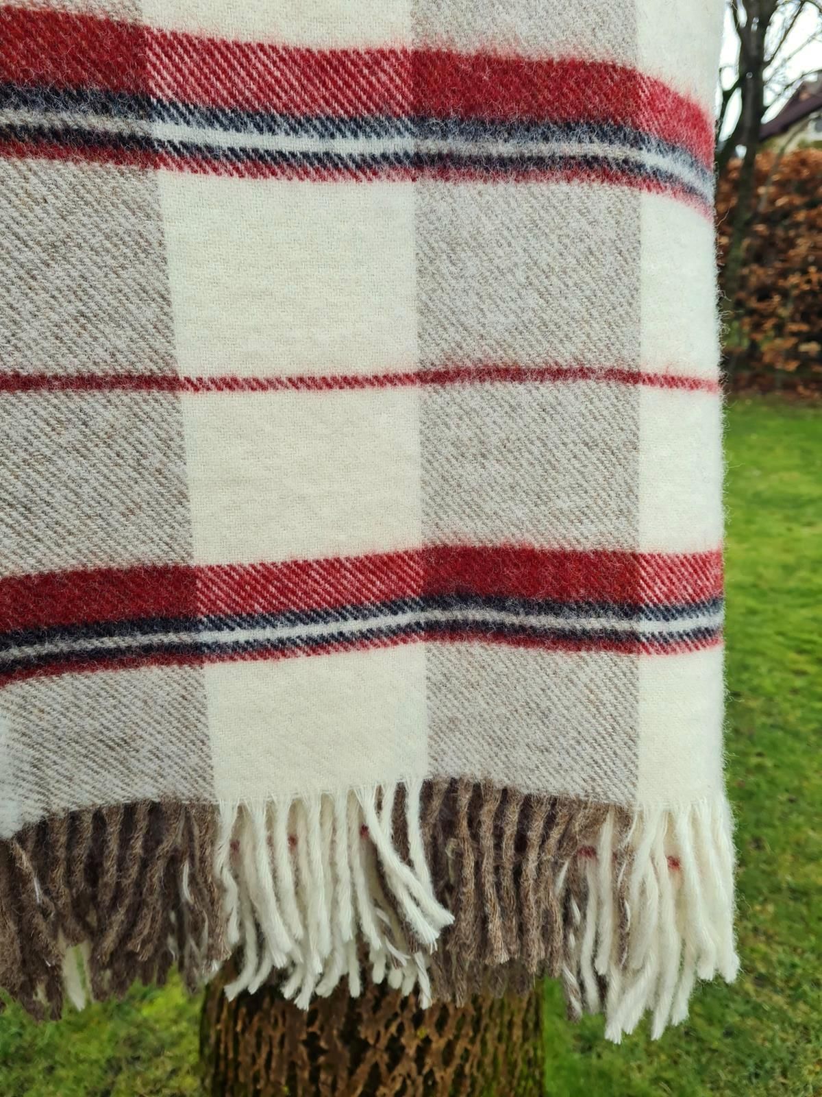 Koc Wełniany Jagnięcy Z Frędzlami 150X200 Krata Terakota Łódź