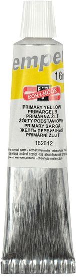 tempery to farby rozcieńczalne wodą, które po wyschnięciu można ponownie rozpuścić wodą przeznaczone są do malowania na powierzchniach chłonących wodę np. papier, karton, drewno, płótno cechują sie trwałymi , odpornymi na światło kolorami i wysoką odpornością na ścieranie odznaczają się intensywnością barw, płynną konsystencją oraz wizualizacją pracy pędzla bardzo dobrze kryją podłoże pojemność: 16 ml można je mieszać z innymi farbami wodnymi kolor: żółcień podstawowa