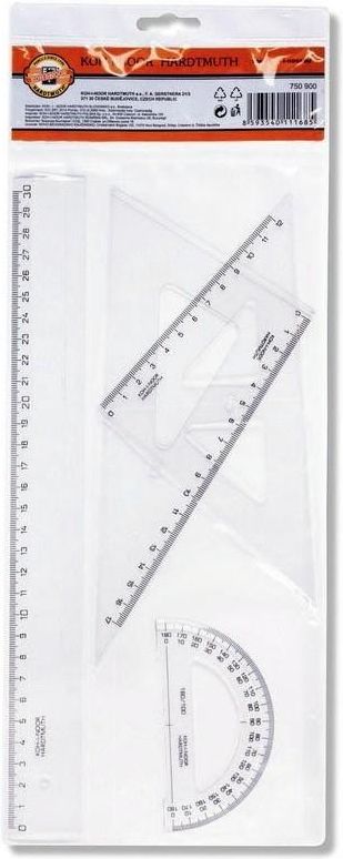 ZESTAW KREŚLARSKI 4 ELEMENTY LINIJKA 30CM EKIERKA KĄTOMIERZ KOH I NOOR Komplet geometryczny 30 cm 4-elementy 871, Koh-i-Noor Koh-I-Noor Komplet geometryczny 30 cm 4-elem. 871 marki Koh-i-Noor to doskonałe narzędzie dla wszystkich miłośników matematyki i geometrii. W skład zestawu wchodzą cztery elementy, które umożliwiają precyzyjne i profesjonalne wykonywanie różnorodnych obliczeń oraz rysunków geometrycznych. Dzięki wysokiej jakości materiałom użytych do produkcji, komplet jest trwały i niezawodny, sprawiając, że praca z nim staje się czystą przyjemnością. Zestaw geometryczny 30 cm marki Koh-i-Noor to niezbędny element wyposażenia każdego ucznia, studenta czy profesjonalisty. Zaawansowana technologia produkcji oraz precyzja wykonania gwarantują, że narzędzia z tego zestawu będą służyć przez wiele lat, nie tracąc na jakości. Zestaw jest praktyczny, kompaktowy i łatwy w przechowywaniu, co sprawia, że idealnie sprawdzi się zarówno w szkole, biurze, jak i podczas pracy zdalnej.