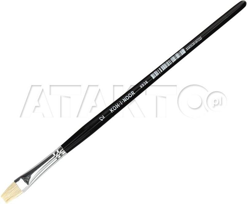 Pędzel płaski 9936 marki Koh-I-Noor . Dzięki swojej sprężystości włosia, a także zdolności do powrotu do pierwotnego kształtu polecany do farb akrylowych oraz olejnych. Wykonany został z naturalnej szczeciny pochodzącej z regionu Chongqing w Chinach, niezwykle cenionej na rynkach światowych. Natomiast trzonek wykonany został z lakierowanego drewna. Szczecinę umieszczono bezszwowo w mosiężnej skuwce w kolorze srebrnym. Idealne rozwiązanie do domu, szkoły lub pracowni.
