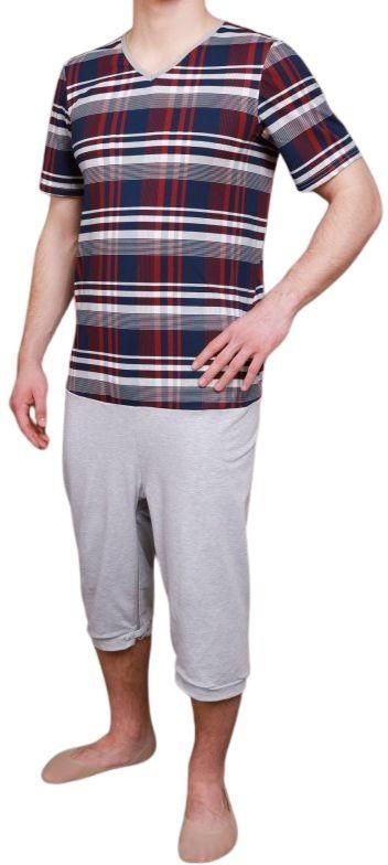 Kombinezon jednoczęściowy z zamkiem na plecach, piżama dla seniora rozmiar S krótkie rękawy, krótkie nogawki - polecamy na okres ciepły Krata szara Łódź