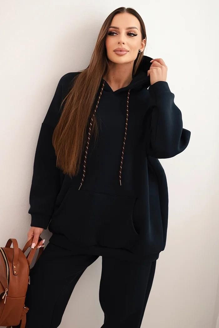 Komplet dresowy damski ocieplany z bawełny i z kapturem granatowy Łódź