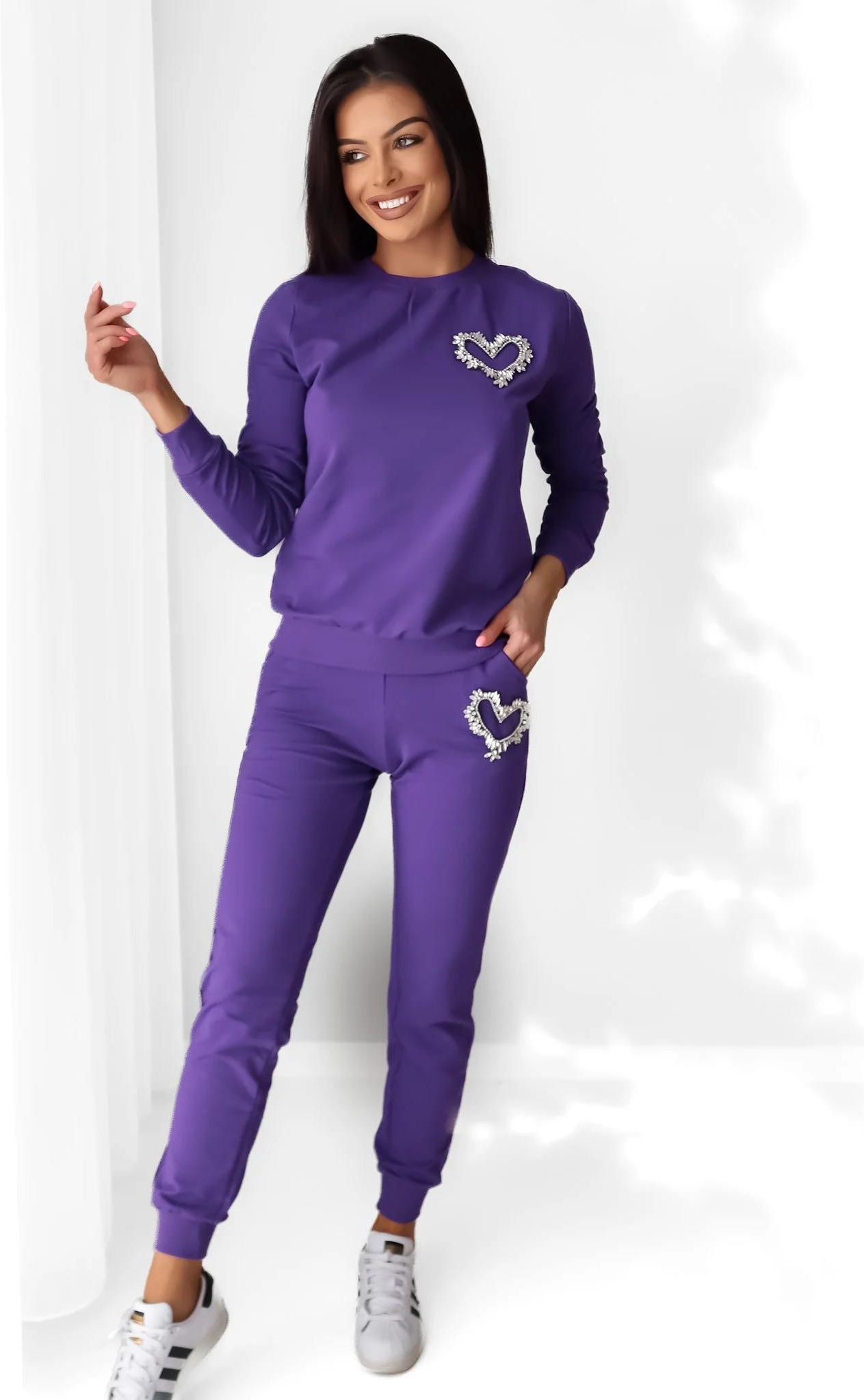 Komplet dresowy z serduszkiem z cyrkonii - FIOLETOWY - Uniwersalny Łódź