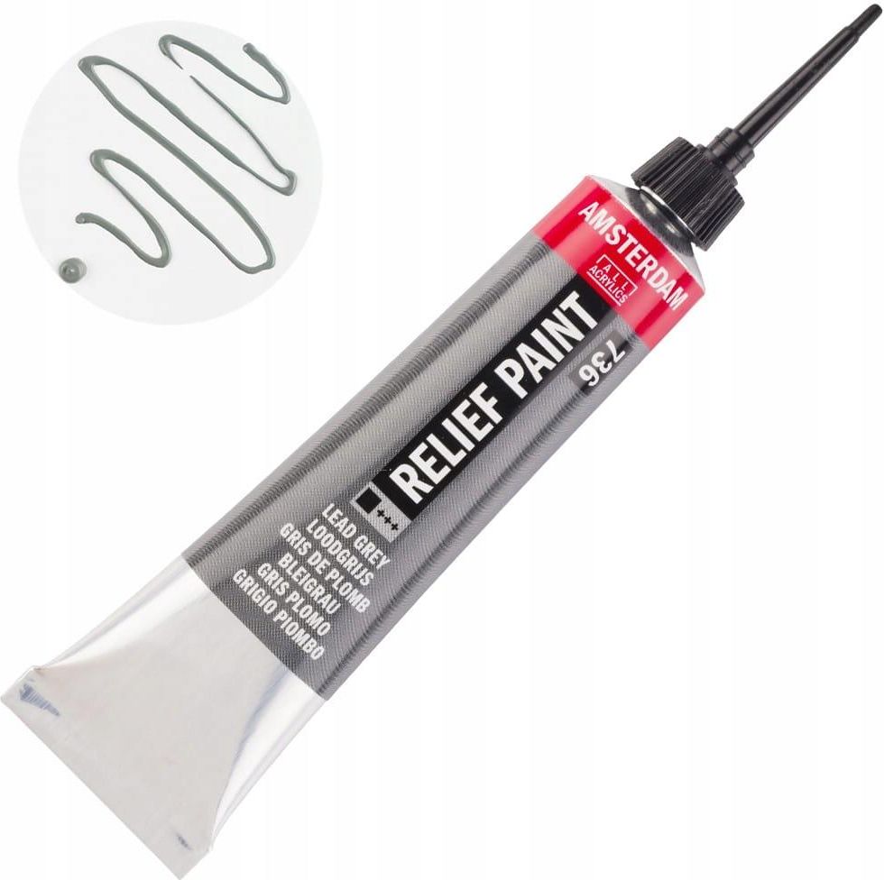 Konturówka Relief Paint Amsterdam 20 ml - 736 Lead Grey Farba konturowa Relief Paint Amsterdam dla hobbystów, dzięki której prace uzyskują profesjonalny wygląd. Dzięki niej można tworzyć wyraźne linie 3D. To bardzo wszechstronna farba - przylega zarówno do powierzchni chłonnych, jak i niechłonnych. …