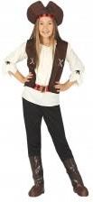 Imprezy tematyczne i przebierane to absolutny hit ostatnich czasów. Warto zaopatrzyć swoją córkę w odpowiedni strój, który wyróżni ją spośród tłumu. Przebranie Pirackie to świetny sposób na szybką transformację karnawałową. Kostium Piratki z Wyspy Skarbów zawiera: bluzkę spodnie kamizelkę kapelusz pasek opaskę na głowę nakładki na łydki Materiał: tkanina poliestrowa. Kremowa, tradycyjna koszula piracka świetnie łączy się z brązową kamizelką oraz czarnymi spodniami. Do kostiumu dołączone są pasujące akcesoria. Przebranie Piratki to idealny kostium na bal karnawałowy, imprezy tematyczne i Ostatki. opis/rozmiar 3-4 lat 5-6 lat 7-9 lat 10-12 lat BLUZKA długość całkowita 38 cm 44 cm 49 cm obwód w klatce piersiowej 62 cm 70 cm 78 cm długość rękawa od ramienia 30 cm 35 cm 40 cm długość rękawa od pachy 25 cm 30cm 35 cm SPODNIE długość całkowita 52 cm 60 cm 72 cm długość nogawki od kroku 38 cm 44 cm 50 cm KAMIZELKA długość całkowita 34 cm 36 cm 40 cm obwód klatki piersiowej 64 cm 68 cm 72 cm