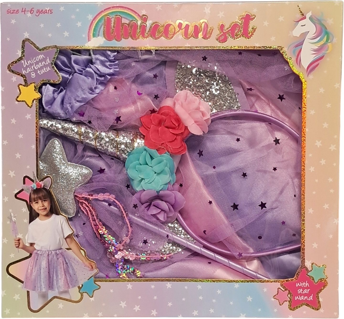 Kostium Strój przebranie karnawałowe dla dziewczynki jednorożec Świetny zestaw dla każdej miłośniczki jednorożców. Strój posiada spódniczkę, kolorowa opaskę na głowę z rogiem i uszami oraz pięknie wyglądające skrzydełka! Ten strój to fantastyczne rozwiązanie na bal przebierańców, urodziny , oraz do codziennych zabaw. Zestaw idealnie wpasuję się również na szkolny bal karnawałowy Dla dziewczynki 4 -6 lat