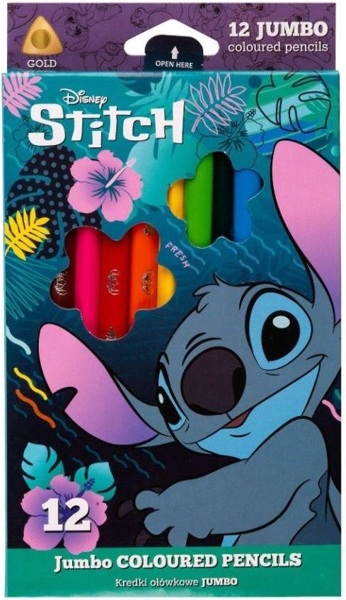 Kredki Ołówkowe Trójkątne Jumbo Disney Core Stitch 12 Kolorów Łódź