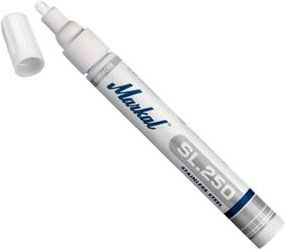 przemysłowy marker olejowy SL 250 Paint do stali nierdzewnej i innych stopów metali odpornych na korozję tusz o bardzo małej zawartości siarki i halogenów, umożliwia całkowicie bezpieczne znakowanie stali nierdzewnej po usunięciu znakowanie nie zostawia żadnych śladów na stali i nie szkodzi cynkowaniu ani malowania końcowemu tusz o bardzo słabym zapachu, nie zawiera ksylenu (bezpieczny dla zdrowia użytkownika) szybkoschnący zakres temperatur stosowania markera: -20°C do +50°C odporność markera na temperaturę: do 100°C końcówka Medium o grubości 2-4 mm mocna końcówka pisząca zapewnia długą żywotność markera kolor: biały dostępne kolory: biały, żółty, czerwony, niebieski, zielony, czarny znajduje zastosowanie w przemyśle stoczniowym, lotniczym, naftowym i gazowym, spawalniczym produkt amerykańskiej firmy Markal LA-CO