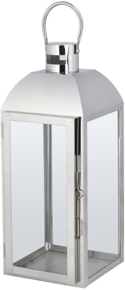 Latarenka na świecę blokową. Produkt wykonany ze stali nierdzewnej i szkła. Do użytku wewnątrz pomieszczeń.