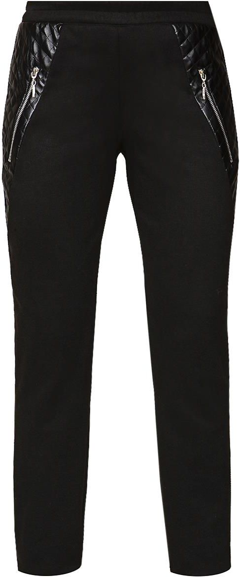 Fason: dopasowane, kieszenie naszywane z tyłu, guma w pasie Zapięcie: brak Ozdoby: suwaki metalowe Materiał: dzianina dresówka, pikówka skórzana