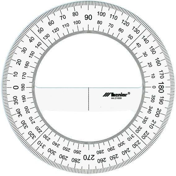 Kątomierz 150 mm 360° Leniar 21009 Kątomierz 360 stopni 20009 o średnicy 15 cm służy do określenia wielkości kątów między dwoma lub więcej elementami. Jest to przydatne narzędzie w różnych dziedzinach, takich jak budownictwo, inżynieria, stolarstwo, rysunek techniczny, projektowanie. Kątomierz wykonany z transparentnego tworzywa plexi umożliwia z pełną precyzją wyznaczyć kąty w trakcie tworzenia rysunku technicznego. Narzędzie kreślarskie posiada podwójną podziałkę, w prawo i w lewo, co 1° w zakresie 0° - 360°. Cechy produktu: wykonany z transparentnego tworzywa pleksi, średnicy 15 cm, podwójna podziałka w prawo i lewo, zakres 0° - 360°.