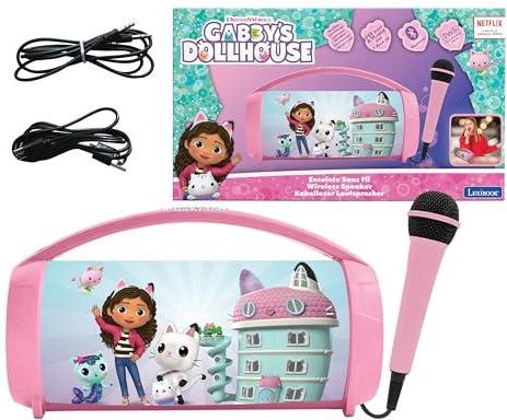 Lexibook, Gabby's Dollhouse bezprzewodowy głośnik świetlny z mikrofonem, dźwięk stereo, funkcja karaoke, złącze USB i karty SD, akumulator wielokrotnego ładowania, uchwyt do noszenia, różowy, Producent: Lexibook Odkryj niezrównaną jakość dźwięku dzięki bezprzewodowemu głośnikowi świetlnemu z …