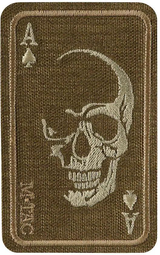 M-Tac Naszywka Face of war (haft) Naszywka o tematyce moralnej FACE OF WAR od marki M-Tac to nowa interpretacja znanej od czasów wojny wietnamskiej „karty śmierci”. Naszywka jest wykonana w postaci karty asa pik z wyhaftowaną sylwetką czaszki pośrodku. Wśród wojska czaszka oznacza nieustraszoność w obliczu śmierci. As pik jest uważany za najstarszą kartę, dlatego koniecznie oznacza zwycięstwo życia nad śmiercią. Naszywka jest wykonana z wysokiej jakości materiału Cordura 500D, który jest odporny na uszkodzenia mechaniczne oraz nie blaknie od słońca. Obraz jest naniesiony kolorowym haftem, co sprawia, że ​​naszywka jest bardziej wyrafinowana. Mocowanie do odzieży lub sprzętu za pomocą rzepów. W warunkach współczesnych realiów ta naszywka stanie się niezwykle istotnym dodatkiem do Twojego ekwipunku. Wymiary:8.5 х 5.2 cm Materiał:: Cordura 500D Posiada system mocowania: rzep