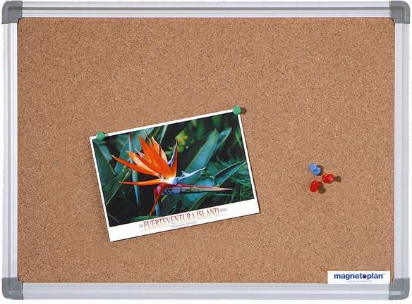 Tablica korkowa SP 1200x900 mm Alu + pinezki tablica korkowa do zawieszenia na ścianę rama wykonana z aluminium przystosowana zawieszania kartek, zdjęć, eksponatów za pomocą pinesek wymiary tablicy: 900 x 1200 mm w zestawie: uchwyt do zawieszenia na ścianie pineski przeznaczona do prac w biurze, szkole, urzędzie opakowanie: pudełko tekturowe produkt niemieckiej firmy Magnetoplan