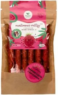 Naturalna przekąska dla dzieci i dorosłych Rollsy™ malinowe z chia to pyszna i w 100% naturalna przekąska, która łączy w sobie słodycz jabłka (80%), kwaśny smak malin (20%) oraz moc superfood- nasionachia, źródła Omega-3. Dzięki swojej strukturze wspierają trening żucia i gryzienia, tak ważny od początku rozszerzania diety dziecka. To nie tylko zdrowa alternatywa dla sklepowych słodyczy – to także codzienna dawka błonnika, witamin i cennych kwasów omega-3. - Prosty skład – tylko jabłko, malina i nasiona chia. - Bez dodatku cukru, konserwantów i sztucznych barwników. - Źródło błonnika, witamin i kwasów omega-3. - Wegańskie i bezglutenowe – odpowiednie dla całej rodziny. - Naturalnie chrupiąca tekstura dzięki nasionom chia. Dlaczego warto? - Wsparcie zdrowych nawyków – zamiast batonika czy ciastka. - Naturalne źródło energii – owoce i nasiona chia dodają siły w ciągu dnia. - Rozwój i sensoryka – chrupiąca faktura to atrakcja dla dzieci i trening jamy ustnej. - Superfood na co dzień – chia wzbogacają dietę w kwasy omega-3 i minerały. Sięgaj po nie jak Ci wygodniej! - Idealne do szkoły, na spacer czy podróż. - Szybka przekąska w pracy lub po treningu. - Smaczny i zdrowy element lunchboxa Każde opakowanie (50 g) zawiera 5–8 rollsów™ o intensywnym malinowym smaku z nutą chrupiących nasion chia. Skład: jabłko 80%, malina 20%, nasiona chia. Dodatkowe informacje: Alergeny: może zawierać śladowe ilości glutenu, soi, mleka, jaj i gorczycy (zanieczyszczenie krzyżowe).Przechowywanie: w suchym i chłodnym miejscu, z dala od wilgoci. Rollsy™ malinowe z chia to pyszna, naturalna i funkcjonalna przekąska – chrupiąca, zdrowa i pełna wartości odżywczych. Zastępuje sklepowe słodycze, wspiera rozwój dziecka i wzbogaca dietę w superfood. Dodaj do koszyka i przekonaj się, jak smakuje malinowa energia z chia! Przekąski i słodycze – zdrowe alternatywy na co dzień dla dzieci i dorosłych! Lubimy sięgać po coś słodkiego, to naturalne. Ważne jednak, by wybierać takie przekąski, które nie tylko smakują, ale też wspierają nasze zdrowie. Dlatego coraz więcej osób stawia na zdrowe słodycze i przekąski bez cukru – pełne błonnika, witamin i naturalnej energii. Dlaczego warto zamienić sklepowe słodycze na zdrowe przekąski? Mniej cukru i puste kalorie → więcej wartości odżywczych. Wsparcie energii w ciągu dnia – bez nagłych skoków i spadków glukozy. Naturalny skład – owoce, orzechy, nasiona i superfoods zamiast sztucznych dodatków. Dobre dla zębów i metabolizmu – unikasz nadmiaru rafinowanego cukru. Lepsze nawyki żywieniowe dla dzieci i dorosłych – słodko, ale zdrowo. \ Zdrowe przekąski na imprezę i spotkanie Impreza nie musi oznaczać wyrzutów sumienia. Na stole obok tradycyjnych przekąsek mogą pojawić się chrupiące orzechy, owocowe rollsy, pełnoziarniste chrupki czy batony bez cukru. Dzięki temu bawisz się bez ograniczeń i bez zbędnych kalorii. Na co dzień – do szkoły, pracy i w podróży Zdrowe przekąski są wygodne! Możesz wrzucić je do plecaka, torebki czy lunchboxa. Owocowe rollsy to szybka dawka energii i witamin, orzechy dostarczą dobrych tłuszczów, a prażona ciecierzyca czy chrupki zbożowe sycą i dają wartościowe białko i błonnik. Świadomi rodzice = zdrowe dzieci Rodzice coraz częściej zwracają uwagę na to, co ląduje w lunchboxie ich dzieci. Wiedzą, że to właśnie codzienne wybory kształtują przyszłe nawyki żywieniowe i mają wpływ na zdrowie w dorosłym życiu. Dlatego sięgają po owocowe rollsy, batony bez cukru czy chrupiące orzechy – dzięki temu dzieci jedzą coś, co naprawdę im smakuje, a jednocześnie wspiera rozwój i odporność. Zdrowe słodycze dla dzieci Najmłodsi uwielbiają słodkie smaki nie trzeba im ich ograniczać, a wystarczy podać w lepszej formie. Owocowe przekąski, batony z suszonych owoców, chrupki pełnoziarniste czy sezamowe paluszki to pyszna nauka zdrowych nawyków od najmłodszych lat. Zdrowe słodycze i przekąski to nowoczesny trend w diecie – łączą przyjemność z troską o zdrowie. Wybierz swoją ulubioną alternatywę i ciesz się smakiem bez wyrzutów sumienia!