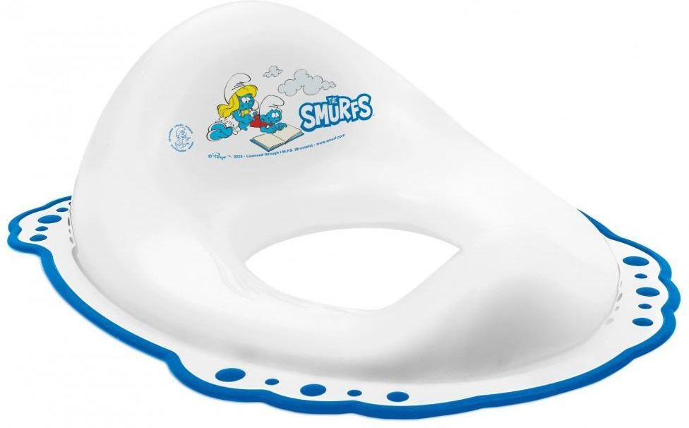 MALTEX Nakładka sedesowa z gumkami antypoślizgowymi SMERFY, biały Nakładka na deskę sedesową od Maltex Baby została zaprojektowana z myślą o dziewczynkach i chłopcach, uwzględniono anatomię obu płci i zastosowano odpowiednio wysokie zabezpieczenie przed wydostaniem się nieczystości na zewnątrz. …