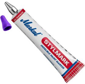 Markal Stylmark Marker 3mm FioletowyMarkal Stylmark to wszechstronny marker w tubie, idealny do znakowania różnorodnych powierzchni, w tym chropowatych, brudnych, zaolejonych i wilgotnych. Możliwe jest również znakowanie elementów znajdujących się pod wodą.Marker doskonale nadaje się do znakowania metalu (zarówno brudnego, jak i czystego, gładkiego i chropowatego), kamienia, cegły, asfaltu, makadamu, plastiku, szkła, ceramiki, gumy, kauczuku, drewna (suchego i mokrego) oraz tekstyliów.Farba nie spływa przy znaczeniu powierzchni pionowych i poziomych, a po wyschnięciu jest nieusuwalna, co zapewnia trwałe oznakowanie. Nanoszona farba jest odporna na warunki atmosferyczne, blaknięcie (UV), wpływ czynników chemicznych oraz wodę morską.Czas schnięcia wynosi zaledwie 5 minut. Marker można stosować w szerokim zakresie temperatur od -20 °C do +70°C, a oznakowanie jest wytrzymałe na temperaturę do 200°C.Marker wyposażony jest w stalową, wytrzymałą końcówkę kulkową o średnicy 3 mm, a także dostępne są końcówki o średnicy 2 i 6 mm. Produkt jest wolny od ksylenu, co czyni go bezpiecznym dla zdrowia użytkownika. Masa pojedynczego markera wynosi 78 g.Markal Stylmark znajduje zastosowanie w przemyśle hutniczym, odlewniczym, stoczniowym, metalurgicznym, budowlanym, oponiarskim i spawalniczym.Sposób użytkowania:Marker należy trzymać prostopadle do znakowanej powierzchni. Przykładając metalową końcówkę do podłoża, należy wcisnąć tubę. Należy unikać wyginania i rolowania markera, aby nie ryzykować jego pęknięcia.Producent: Markal LA-CO (USA)