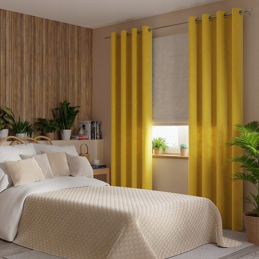 VELVI Zasłona gotowa na przelotkach 250x140 żółty - do salonu, sypialni 5907693255203 Zasłona gotowa na przelotkach 140x250 cm żółta VELVI Zasłony z kolekcji VELVI to szeroka gama kolorów, w której znajdziesz coś dla siebie i swojego wnętrza. Zasłona z miękkiej welwetowej tkaniny w żółtym kolorze, która jest nie tylko miła w dotyku, ale i przyjemna dla oka. Góra posiada bardzo praktyczne 5 cm przelotki w kolorze chrom mat, dzięki czemu zawieszenie jej nie będzie dla Ciebie problematyczne. Dół został wykończony na prosto natomiast, boki zostały obszyte. Zasłona dzięki swojej półzaciemniającej strukturze może służyć do przysłaniania, ale również jako forma dekoracji Twojego okna. Kolor zasłon ze względu na brak zdobień będzie świetnie prezentować się w salonie czy sypialni. Proste i szybkie zawieszenie zasłony na przelotkach Przelotki w zasłonie ułatwią Ci jej zawieszenie, a jedyne co potrzebujesz w swoim domu to karnisza drążkowego. Jeśli cenisz sobie szybkie i proste mocowanie dekoracji, a jednocześnie chcesz, aby układa się ona w regularne fale- to ten sposób będzie dla Ciebie odpowiedni. Cechy produktu Rozmiar: 140x250 cm Skład: 100% poliester Typ produktu: zasłona gotowa Rodzaj tkaniny: gładka Sposób zawieszenia: przelotki Wykończenie boków: obszyte Wykończenie dołu: listwa Transparentność: półzaciemniająca Marka: Markizeta Tolerancja wymiaru: +/- 3% Indeks: VELVI0/ZGP/009/140250/1 Jak dbać o zasłony Zalecane jest używanie niskich temperatur podczas prasowania i odświeżania zasłon. Nie przekraczać temperatury prania 30 stopni Nie suszyć w suszarce bębnowej Prasować tylko na lewej stronie Zasłony z kolekcji VELVI to szeroka gama kolorów, w której znajdziesz coś dla siebie i swojego wnętrza. 14270175367