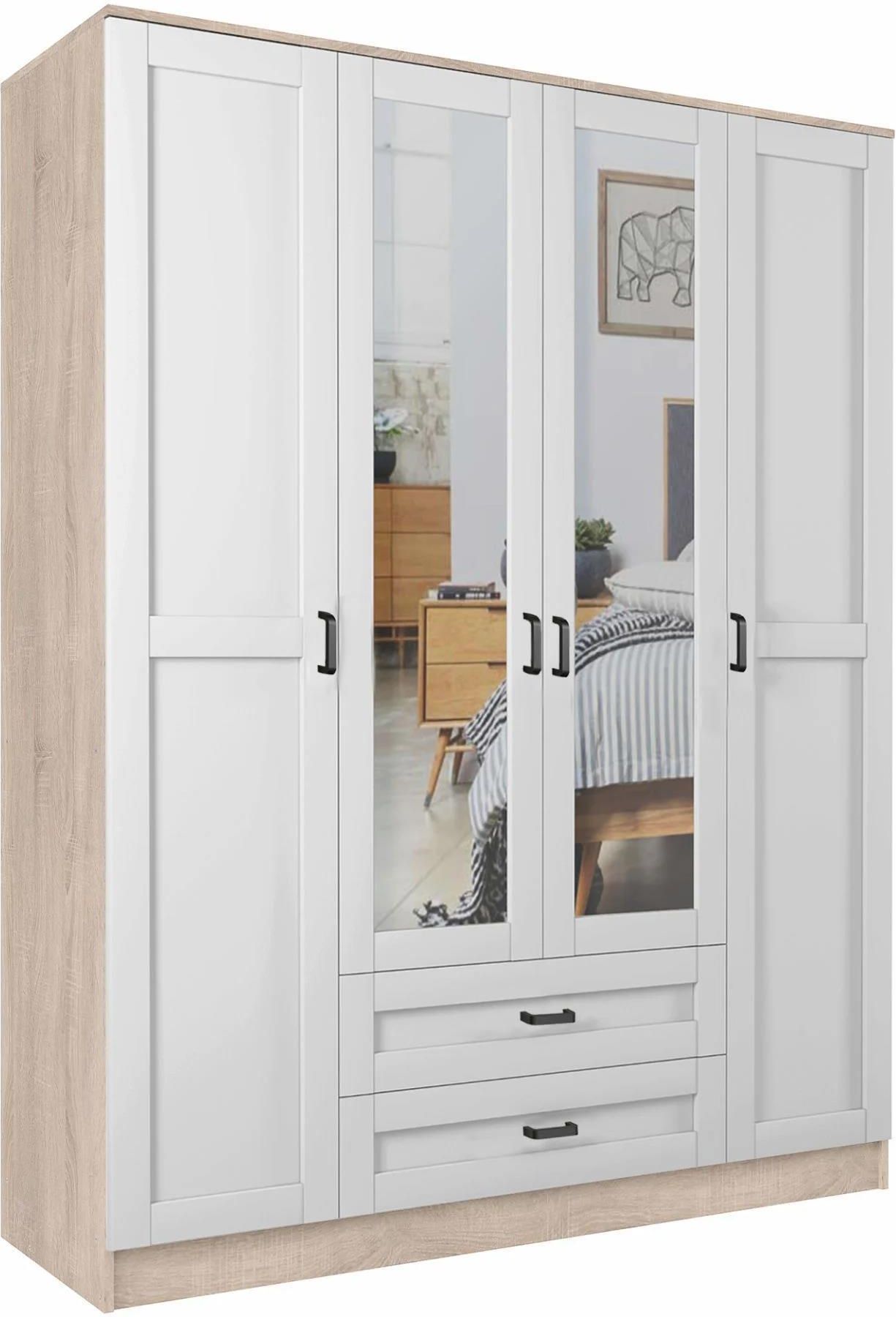 Mebel Bos Szafa Cento Ii 160X200 4D2S Dąb Sonoma Biała Ramka Z Lustrem Łódź