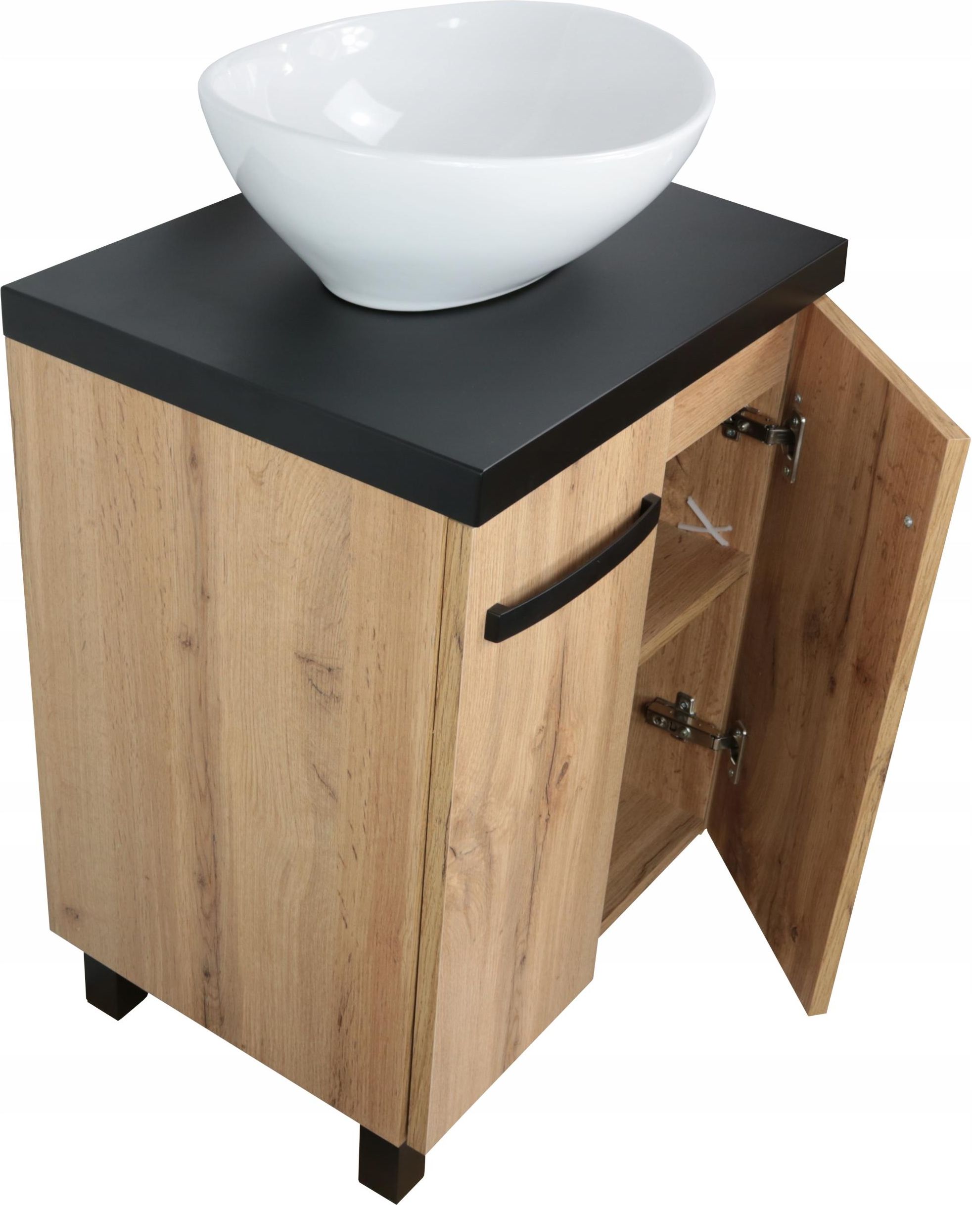 Meblico Stojąca Szafka Pod Umywalkę Dąb Wotan 50Cm Blat Czarny Mat Lakierowany Łódź