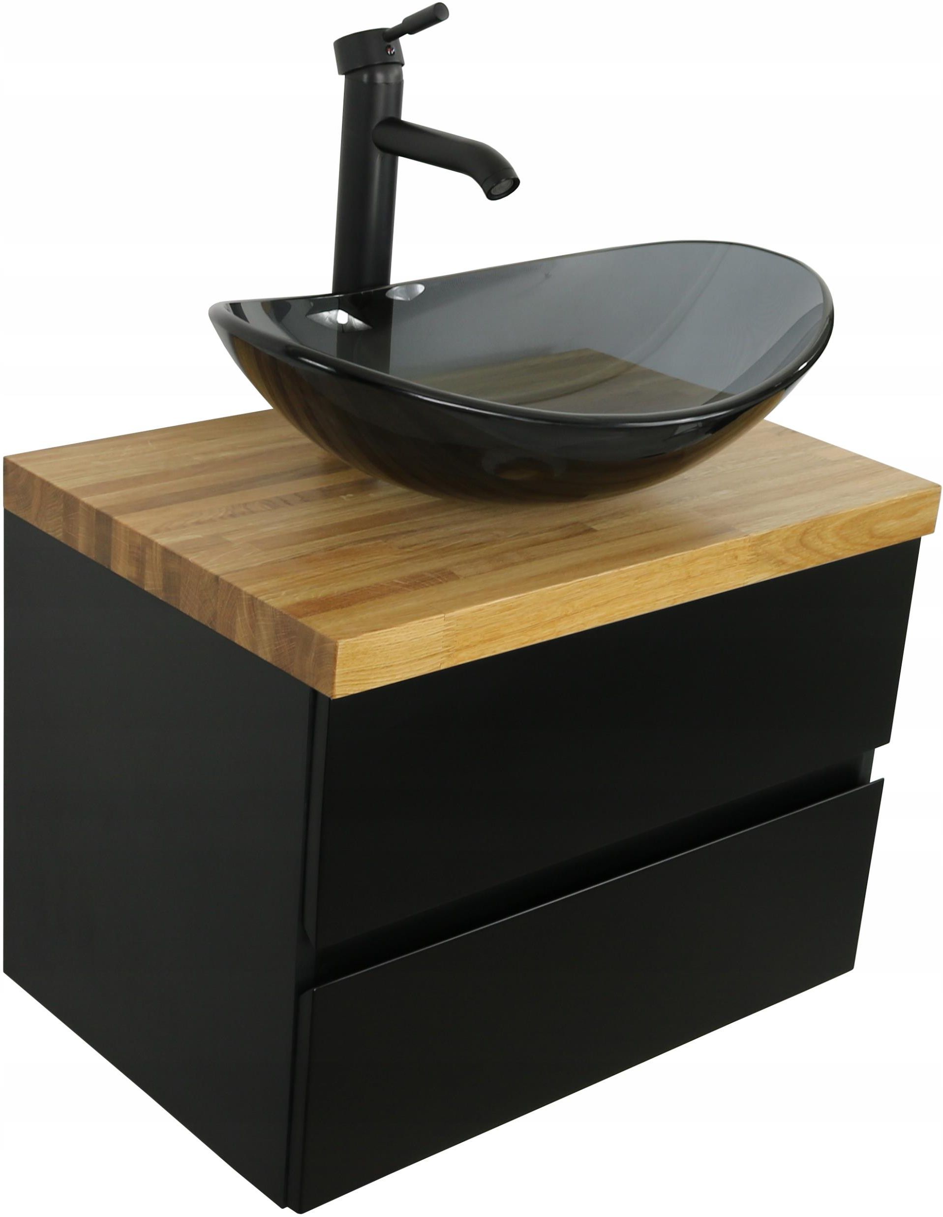 Meblico Zestaw - Szafka Pod Umywalkę Lakier Czarny Mat + Lity Blat Dębowy 60Cm Łódź