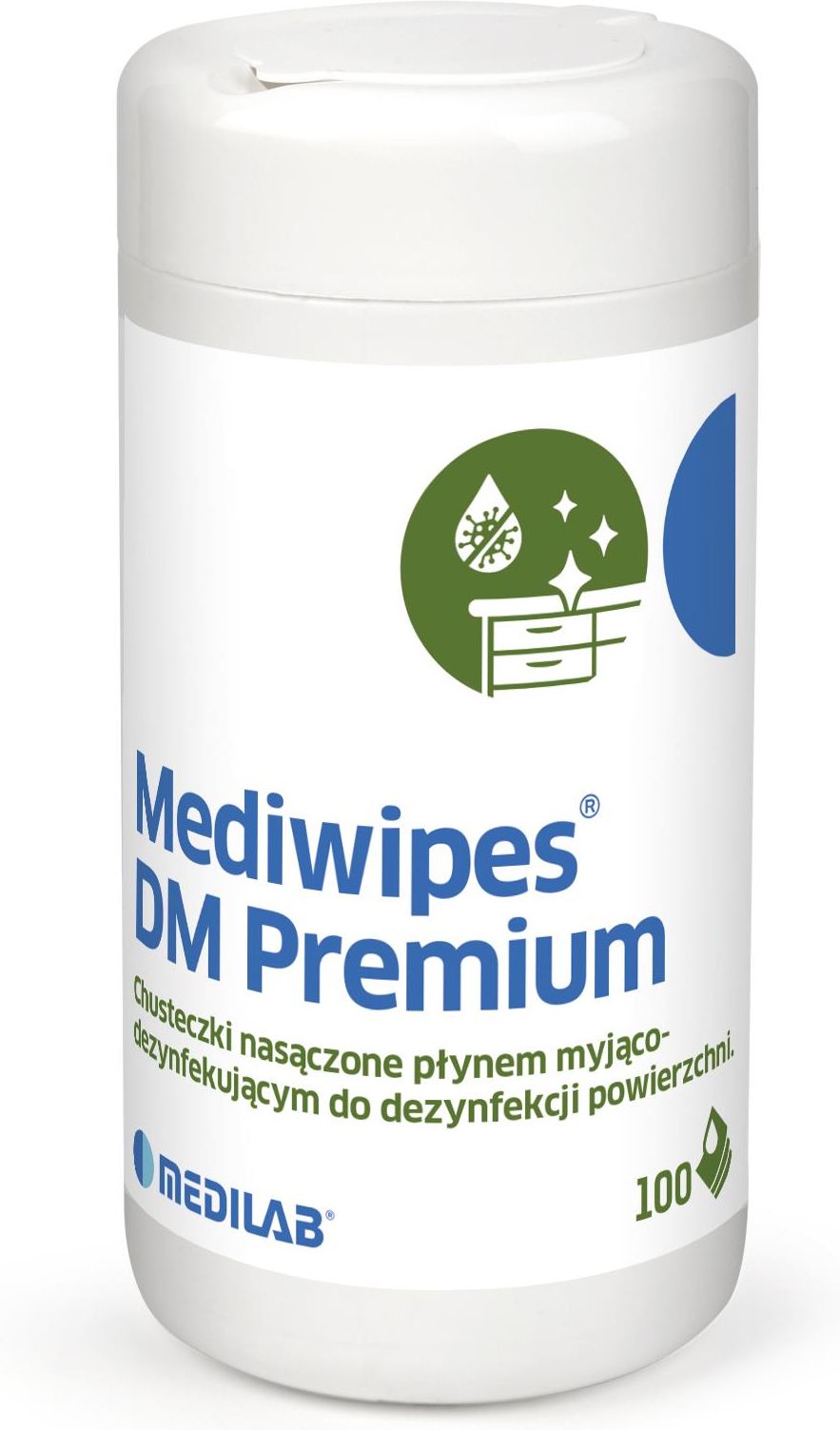 Chusteczki Mediwipes DM Premium do dezynfekcji i mycia powierzchni 100szt tuba Medilab - 5902340985403 Mediwipes DM w wersji Premium to najnowsza wersja chusteczek Mediwipes w wygodnej tubie. Chusteczki przeznaczone są do dezynfekcji i mycia delikatnych powierzchni oraz różnego rodzaju wyposażenia. …