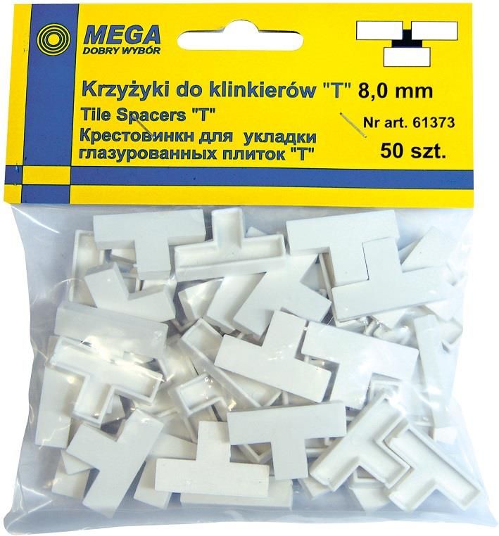 TEOWNIKI DYSTANSOWE TYP 'T' 10MM 40 SZT.MEGA Mega Pakowane w worek foliowy z kartonową zawieszką Tolerancja zawartości opakowania +/- 2 %