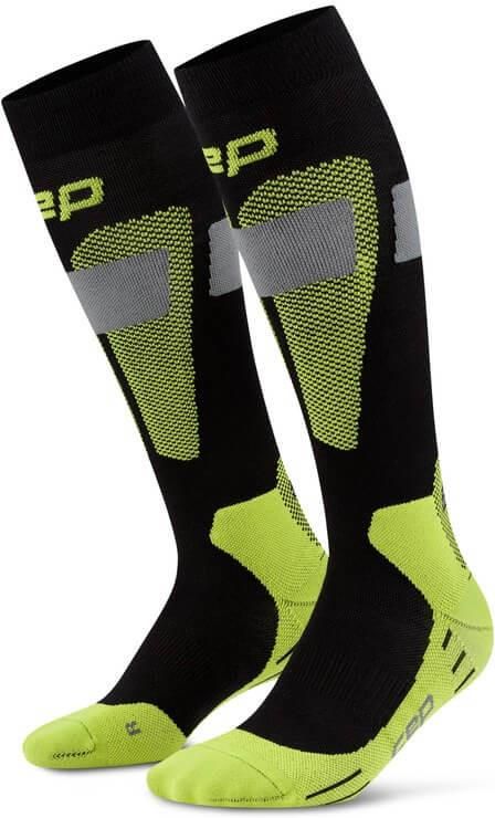 Męskie sportowe podkolanówki kompresyjne na zimę z wełną merino zielone CEP Łódź
