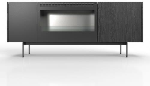 %description% WYMIARY 181 cm x 74 cm x 36 cm STELAŻ: czarny KORPUS: czarny, szkocka sosna FRONT: czarna stal, szkocka sosna KOMINEK: biopaliwo firmy Planika *możliwość zakupu pilota do sterowania kominkiem Komoda z kominkiem Sintesi szkocka sosna czarna i płyta przypominająca skórę Obiekt godny …