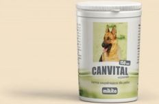 Karma uzupełniająca dla psów. Skład: wit. A - 500000 j.m., wit. D3 - 10000 j.m., wit. E - 2500 mg, biotyna - 50 mg, wit. B1 - 3,5 mg, wit. B2 - 17 mg, wit. B6 - 7 mg, wit. B12 - 0,02 mg, cholina - 1350 mg, kwas pantotenowy - 38 mg, kwas nikotynowy - 235 mg, wapń - 5%, fosfor - 4%, magnez - 4g, Ca:P …