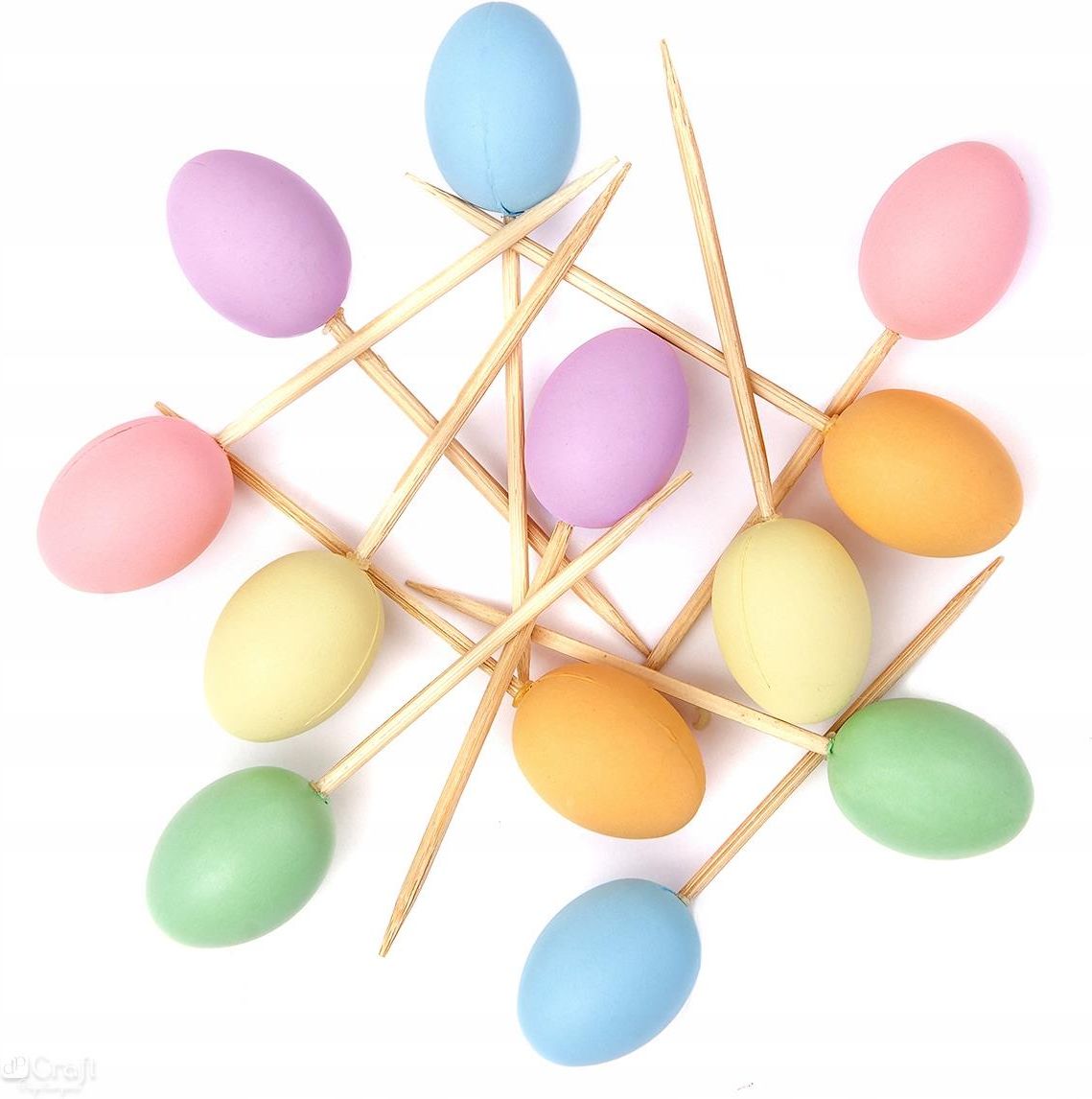 MINI JAJKA NA PIKU, 12 SZT. TĘCZOWE Mini jajczka na piku w uroczych, teczowych kolorach. Wysoka jakość wykonania i matowa farba zapewniają ich naturalny wygląd. Drewniany patyczek ułatwia mocowanie np. do wianków stroików czy styropianowej bazy. Urocze jajeczka wzbogacą wiosenne kompozycje, np. wianki, stroiki, czy opakowania słodkich upominków od wielkanocnego zajączka. Wersja tęczowa, występuje tez w rozmiarze 4x3cm. Kolor: błękitny, różowy, żółty, pomarańczowy, fioletowy, jasno-zielony W opakowaniu: 12 szt. Wielkość: 2,5 x 2 cm.