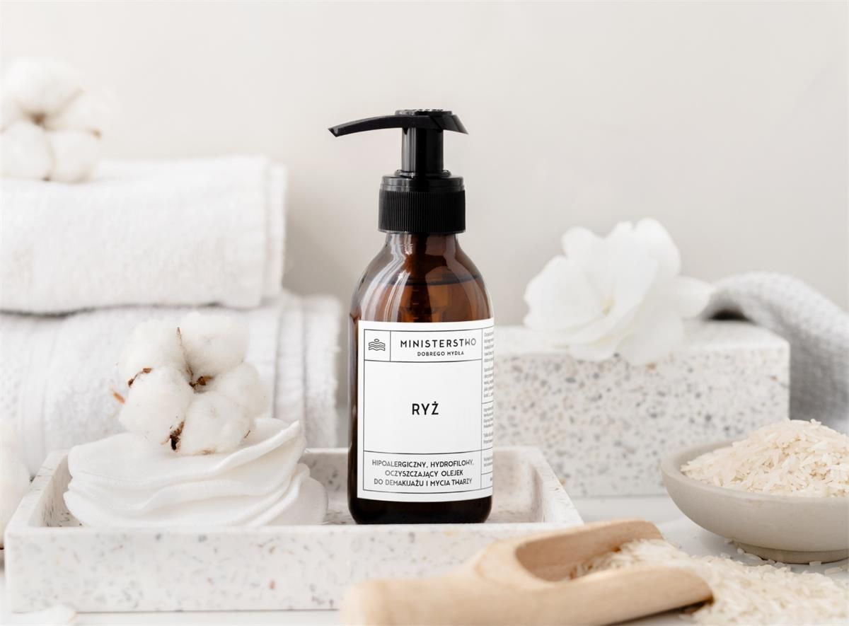 Ministerstwo Dobrego Mydła, ryż - hipoalergiczny, hydrofilowy olejek Olejek, który zmywa makijaż i kremy z filtrem SPF Łagodne, ale skuteczne oczyszczanie skóry z codziennych zanieczyszczeń? Demakijaż bez podrażnień? Odkryj Ryż - hipoalergiczny, hydrofilowy olejek do mycia i demakijażu twarzy, który może być stosowany również przez posiadaczy i posiadaczki cer wrażliwych! Olejek jest wydajny i wygodny w stosowaniu, a jego formuła pozwala na wykonanie relaksującego masażu podczas rozprowadzania, dzięki czemu etap oczyszczania skóry staje się prawdziwą przyjemnością. Bez trudu łączy się z wodą, usuwając nawet wodoodporny makijaż (również oczu) i krem z filtrem SPF, nie powodując przy tym podrażnień czy uczucia przesuszenia. Dzięki odpowiednio dobranym składnikom hydrofilowy olejek Ryż może być stosowany codziennie, zarówno rano, jak i wieczorem, jako jedyny kosmetyk myjący lub w dwuetapowym oczyszczaniu (jako etap 1.). Pozostawia skórę miękką, gładką i nawilżoną, a przede wszystkim świeżą i czystą. Dodatkowo normalizuje wydzielanie sebum i nie zapycha porów. Zapach? Przyjemny, delikatny, pudrowy, z nutą słodyczy. Jeśli używaliście Państwo naszego serum Ryż + Ceramidy, na pewno go rozpoznacie ;) Czysta skóra - naturalnie! Hipoalergiczny olejek do mycia i demakijażu twarzy Ryż zawiera aż 99,7% składników pochodzenia naturalnego. Łączy naturalne oleje roślinne (m.in. olej ryżowy, ze słodkich migdałów czy nasion bawełny), lipidy ryżowe oraz witaminę E z delikatnymi, ale jednocześnie skutecznymi emulgatorami. To właśnie one odpowiadają za właściwości hydrofilowe Ryżu - dzięki nim nasz olejek do demakijażu "chwyta" zanieczyszczenia, a następnie błyskawicznie łączy się z wodą (emulguje), tworząc lekkie mleczko i bez trudu spłukuje ze skóry makijaż, kremy SPF i nadmiar sebum, które zbierają się na skórze przez cały dzień. Efekt finalny mycia olejkiem zależy oczywiście od rodzaju zabrudzeń oraz stanu cery - Ryż stosować możemy więc jako jedyny kosmetyk myjący lub pierwszy z kilku etapów oczyszczania. Doskonale przygotowuje skórę pod działanie pianki, płynu micelarnego lub delikatnego żelu do mycia twarzy. Kosmetyk wegański. Jak działa? Przedstawiamy wyniki badań aplikacyjnych*: 100% badanych potwierdza, że hydrofilowy olejek Ryż: nie podrażnia skóry oraz oczu, nie zapycha porów, skutecznie usuwa z twarzy zanieczyszczenia, skutecznie usuwa makijaż (również wodoodporny) i produkty z filtrem SPF, pozostawia odczucie czystej i odświeżonej skóry, jest odpowiedni do stosowania rano i wieczorem, może być stosowany jako jedyny kosmetyk myjący, sprawdza się w dwuetapowym oczyszczaniu skór jako krok pierwszy, aplikacja jest komfortowa, a konsystencja olejku pozwala na relaksujący masaż twarzy podczas rozprowadzania, jest wydajny i ma przyjemny zapach. Ponad 90% badanych potwierdza, że olejek do demakijażu Ryż: jest odpowiedni do demakijażu oczu, jest łagodny, nie powoduje przesuszenia skóry i sprawdza się do oczyszczania skóry wrażliwej, pozostawia skórę miękką i gładką w dotyku, pozostawia odczucie nawilżenia, dodaje skórze blasku, poprawia jej ogólny wygląd i kondycję, łatwo się spłukuje i jest idealny do codziennego stosowania. Dodatkowo - normalizuje wydzielanie sebum, - sprawia, że skóra wygląda zdrowo. 97,5% badanych poleciłoby produkt znajomym. * Badania aplikacyjne przeprowadzone przez niezależne laboratorium na grupie 40 osób w wieku 19-64 lat. Czas badania - 2 tygodnie. Sposób użycia Olejki hydrofilowe można stosować na kilka sposobów - postaramy się opisać kilka z nich, ale pamiętajcie Państwo - właściwa droga w oczyszczaniu to ta, która służy i spełnia Wasze indywidualne potrzeby :). Na suchą skórę (metoda rekomendowana przy mocnym makijażu, dla każdego rodzaju cery - uwaga przy aktywnym trądziku, o czym piszemy niżej): Wstrząśnij przed użyciem. Nabierz odpowiednią ilość olejku na suchą dłoń, rozetrzyj go lekko. Nanieś na suchą skórę twarzy i wykonaj delikatny masaż płynnymi, okrężnymi ruchami. Dłuższy i intensywniejszy masaż wykonaj w miejscach bardziej podatnych na kumulowanie zanieczyszczeń (np. przy skrzydełkach nosa, na brwiach, powiekach, ustach) - masaż pomoże w rozpuszczeniu zanieczyszczeń. Następnie zwilż dłonie (lub materiałową ściereczkę/płatek kosmetyczny) ciepłą wodą i przyłóż je do twarzy, przesuwając zanieczyszczenia od wewnętrznej, do zewnętrznej części twarzy. Opłucz dłonie (lub ściereczkę) i powtórz czynność do momentu, aż skóra będzie czysta. Na koniec opłucz twarz nieco chłodniejszą wodą - pomoże to domknąć pory i sprawi, że skóra będzie bardziej sprężysta i świeża. Na wilgotną skórę (metoda rekomendowana przy delikatnym makijażu i cerze suchej, wrażliwej - uwaga przy aktywnym trądziku, o czym piszemy niżej): Zwilż dłonie i/lub twarz ciepłą wodą. Wstrząśnij olejek przed użyciem, następnie nabierz odpowiednią ilość olejku na dłonie, rozetrzyj i nanieś na skórę twarzy. Delikatnie masuj płynnymi, okrężnymi ruchami, do rozpuszczenia zanieczyszczeń. Opłucz dłonie i zmyj powstałą na twarzy emulsję ciepłą wodą (możesz w tym celu użyć również delikatnej, materiałowej ściereczki lub ręcznika), w kierunku od wewnątrz do zewnątrz twarzy. Na koniec opłucz twarz chłodniejszą wodą i nanieś ulubiony olejek lub krem (możesz uprzednio spsikać skórę wybranym hydrolatem). Demakijaż oczu Wstrząśnij olejek przed użyciem. Nabierz jedną lub dwie pompki olejku na zwilżony płatek kosmetyczny lub czystą, materiałową ściereczkę/ręcznik. Rozmasuj delikatnie do wytworzenia emulsji. Przyłóż płatek/ściereczkę do zamkniętej powieki, odczekaj kilka sekund (aby olejki mogły rozpuścić makijaż oczu) i delikatnym ruchem wymiatającym/do zewnątrz zbierz zabrudzenia. Dokładnie op