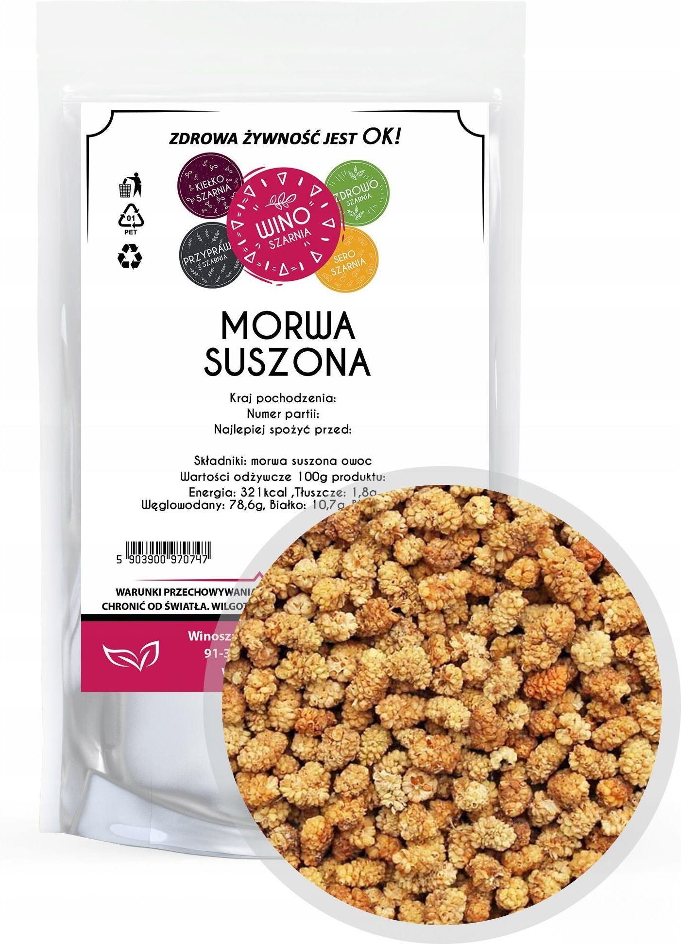Morwa Biała Suszona Biała Owoc Naturalna Przekąska i Superfood Suszone owoce morwy najwyższej jakości suszone owoce morwy białej, które stanowią doskonałą, naturalną przekąskę oraz wartościowy dodatek do codziennej diety. Nasze owoce morwy białej są starannie wyselekcjonowane i suszone w sposób, który zachowuje ich pełnię wartości odżywczych oraz unikalny smak. Parametry Kraj pochodzenia: Turcja Konsystencja: owoc morwy białej suszona Składniki: owoc morwy białej 100% naturalny skład: Bez dodatku cukru, konserwantów i sztucznych barwników. Warunki przechowywania: pomieszczenia suche, wilgotność względna do 75%, temperatura max. 25°C, chronić od światła Opakowanie: saszetka typu doypack z zamknięciem strunowym Dlaczego warto wybrać nasze suszone owoce morwy białej? Nasze owoce morwy białej pochodzą od sprawdzonych dostawców, którzy dbają o najwyższą jakość swoich produktów. Gwarantujemy, że nasze suszone owoce morwy białej spełnią oczekiwania nawet najbardziej wymagających klientów, zapewniając zdrową i smaczną alternatywę dla przetworzonych przekąsek.