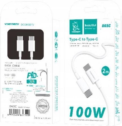 KABEL 100W USB TYP-C DO TYP-C PD USB-C 3,6A DENMEN D65 BIAŁY 2M KABEL USB TYP-C DO TYP-C PD USB-C 3,6A DENMEN BIAŁY 2M D65 100W Szukasz solidnego, szybkiego i niezawodnego kabla do ładowania i przesyłania danych? Kabel USB-C do USB-C Denmen D65 to doskonały wybór dla Ciebie! Z jego pomocą naładujesz swoje urządzenia w błyskawicznym tempie, a przy tym zyskasz trwałość i bezpieczeństwo na lata. Szybkie ładowanie Power Delivery (PD) Dzięki mocy do 100W, kabel zapewnia szybkie ładowanie urządzeń wspierających PD, minimalizując czas potrzebny na pełne naładowanie. Wysoki prąd ładowania 3,6A – gwarantuje stabilne i szybkie ładowanie nawet najbardziej wymagających urządzeń. Długość 2 metry Pozwala na wygodne korzystanie z urządzeń podczas ładowania, zapewniając większą swobodę ruchu. Solidna i trwała konstrukcja Wykonany z wysokiej jakości materiałów, odpornych na zginanie i uszkodzenia, co gwarantuje długowieczność. Kompatybilność z USB-C Idealny do podłączenia wszelkich urządzeń wyposażonych w port USB-C, takich jak smartfony, tablety, laptopy, a nawet Nintendo Switch. Bezpieczeństwo użytkowania Kabel został wyposażony w zintegrowane zabezpieczenia przed przegrzaniem, przepięciami i przeciążeniami, co gwarantuje bezpieczne ładowanie Twoich urządzeń. Specyfikacja techniczna Stan: Nowy Złącze kabla: USB-C do USB-C Prąd: 3,6A Maksymalny prąd: DC 5V/3A, 9V/2.22A Moc: 100W Długość kabla: 2 metry Standard: Power Delivery (PD) Kolor: Biały Typ opakowania: Box Idealny do codziennego użytku Kabel Denmen D65 to rozwiązanie stworzone z myślą o użytkownikach ceniących wygodę, szybkość oraz bezpieczeństwo. Dzięki niemu zapomnisz o długim oczekiwaniu na naładowanie baterii, a solidna konstrukcja sprawi, że kabel posłuży Ci na długo.