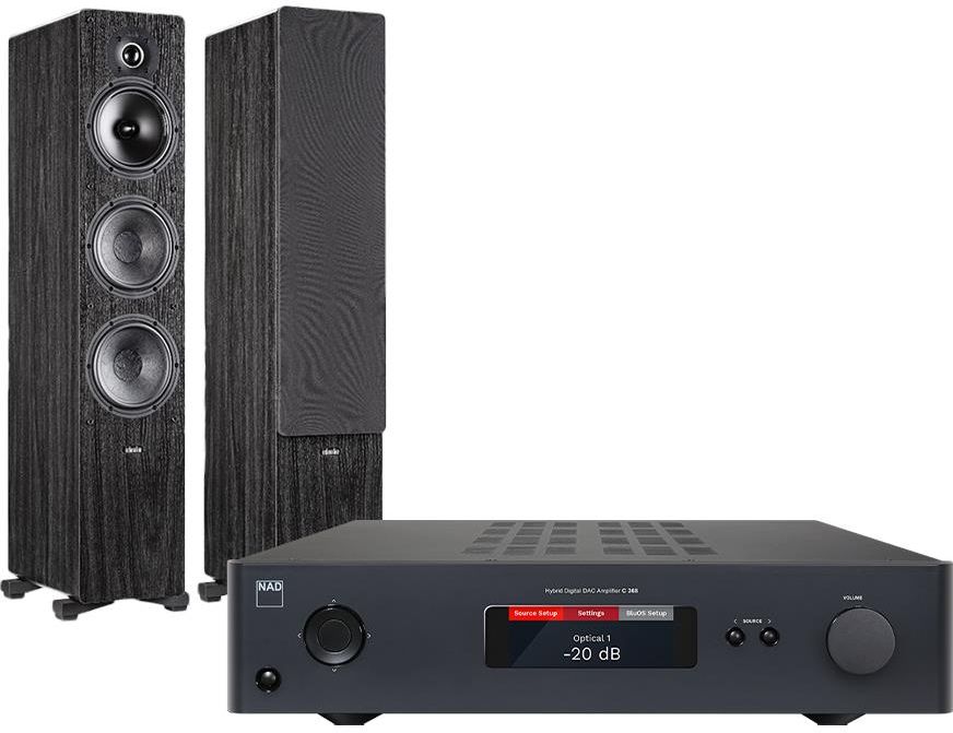 NAD C368 to znakomicie brzmiący, hybrydowy wzmacniacz zintegrowany, który dzięki opcji rozbudowy za pomocą dedykowanych modułów MDC łatwo dostosowuje się do potrzeb użytkownika. W jednym urządzeniu łączą się wszystkie kluczowe elementy dobrego wzmacniacza, takie jak starannie opracowana amplifikacja Class D (wykorzystująca specjalnie modyfikowane stopnie wyjściowe Hypex UcD), zaawansowany przetwornik C/A, bogaty zestaw analogowych i cyfrowych wejść czy też wysokiej klasy przedwzmacniacz gramofonowy. Całość uzupełnia możliwość współpracy z bezprzewodowymi słuchawkami i strumieniowanie dźwięku z urządzeń Bluetooth. Brzmienie. Precyzja. Moc. Wprowadzając do C 368 amplifikację HybridDigital™, inżynierowie NAD zeszli z wydeptanych ścieżek i zamiast zastosować tradycyjny, mało efektywny prądowo stopień wyjściowy klasy AB, opracowali obwody oparte na wzmacniaczach impulsowych klasy D. Dzięki temu, do wnętrza C 368 trafiły specjalnie zaprojektowane układy wykorzystujące zmodyfikowaną wersję sprawdzonego stopnia wyjściowego Hypex UcD. Rozwiązanie to pozwala to na uzyskanie znakomitej precyzji odtwarzanego dźwięku i pokaźnej, pozbawionej zniekształceń i szumów mocy 80 W na kanał, która w szczególnych przypadkach może sięgać aż 120 W wartości szczytowej. Możliwość dodawania funkcji Dzięki opracowanej przez NAD modułowej koncepcji konstrukcyjnej MDC, wzmacniacz C 368 może być łatwo wzbogacany o dodatkowe funkcjonalności, znacznie poszerzające jego możliwości. Dodatkowo, dzięki możliwości stosowania tego typu rozszerzeń, urządzenie staje się otwartym na przyszłość, zabezpieczając użytkownika przed technologicznym starzeniem się wzmacniacza. Obecnie, NAD oferuje dwa moduły rozszerzające dla tego modelu. Pierwszym z nich jest karta MDC BluOS 2 dodająca pełną funkcjonalność odtwarzacza strumieniowego i bezprzewodowego systemu mutliroom, drugą zaś, moduł MDC-HDM2, umożliwiający współpracę C 368 z telewizorem, konsolą gier, czy odtwarzaczem Blu-ray/4K. Strumieniowanie audio i multiroom Dodanie opcjonalnego modułu MDC BluOS 2 gwarantuje dostęp do sieci lokalnej przez Wi-Fi lub przewodowe połączenie Ethernet oraz umożliwia strumieniowe przesyłanie Hi-Res Audio. W ten sposób, wzmacniacz staje się jednocześnie wysokiej klasy źródłem audio, mając dostęp do milionów nagrań z serwisów muzycznych w chmurze, tysięcy internetowych stacji radiowych oraz plików muzycznych z komputera i domowej sieci. Kompatybilność modułu MDC BluOS 2 z urządzeniami ekosystemu Bluesound, pozwala na współpracę C 368 z głośnikami multiroom umieszczonymi w innych pokojach. Muzyka poprzez dwukierunkowy Bluetooth™ Wbudowany w C368 moduł Bluetooth™ jest wyposażony w wysoko wydajny kodek aptX®, dzięki któremu muzyka jest przesyłana z dowolnego urządzenia kompatybilnego z tym interfejsem w jakości CD. Połączenie Bluetooth może być również używane do sparowania wzmacniacza z bezprzewodowymi słuchawkami, takimi jak np. NAD HP70. Analogowa muzyka z winylu C 368 został wyposażony w najlepszy w swojej klasie przedwzmacniacz gramofonowy obsługujący wkładki MM. Odznacza się on precyzyjną korekcją RIAA z szerokim  marginesem przesterowania, wyjątkowo niskim poziomem szumów oraz innowacyjnym dolnozaporowym filtrem sprzężenia zwrotnego. Jego zadaniem jest wyeliminowanie szkodliwego sprzężenia akustycznego pomiędzy wkładką gramofonową a kolumnami głośnikowymi. Wzmacniacz słuchawkowy Do układów audio C 368 wbudowany został w osobny wzmacniacz słuchawkowy o niskiej impedancji wyjściowej i bardzo dużych możliwościach w zakresie napięcia sygnału wyjściowego, dzięki czemu możliwe jest wysterowanie nawet bardzo wymagających słuchawek studyjnych o wysokiej impedancji.   Znakomite możliwości połączeniowe Wzmacniacz C368 to prawdziwe centrum domowej rozrywki. Bogaty zestaw przyłączy zawiera zarówno komplet analogowych wejść liniowych, jak też optyczne i koaksjalne wejścia cyfrowe oraz dedykowane przyłącze dla gramofonu MM. Dodatkowe wyjście Pre-out, może być wykorzystane dla rozbudowy systemu lub podłączenia aktywnego subwoofera, zaś dwa zestawy zacisków pozwalają na współpracę wzmacniacza z dwoma parami kolumn głośnikowych. Całość uzupełniają przyłącza dla wyzwalacza 12V oraz port RS-232, pozwalające na zintegrowanie wzmacniacza w ramach systemów sterowania.   Założona w 1977 r. Indiana Line należy obecnie do grona najważniejszych włoskich marek oferujących kolumny głośnikowe oraz głośniki instalacyjne. Projektanci i inżynierowie opracowujący nowe modele z logo Indiana Line dążą do uzyskania wysokiej jakości wykonania, przy racjonalnym wykorzystaniu poszczególnych podzespołów. Celem takiego podejścia jest osiągnięcie walorów brzmieniowych, które wykraczają znacznie poza parametry, jakie możliwe są do osiągnięcia w tym przedziale cenowym. Dwie ponadczasowe wersje kolorystyczne Klasyczna, a przy tym stylowo zaokrąglona obudowa modelu Indiana Line Tesi 661 doskonale odzwierciedla założenia włoskiej myśli projektowej. Kolumn wykończona jest trwałą, a jednocześnie niezwykle estetyczną okleiną winylową w kolorze jasnego orzecha lub czarnego dębu. Niezależnie od tego, którą z wersji kolorystycznych wybierzesz, model Tesi 661 świetnie odnajdzie się w każdym wnętrzu. Kolumna ta nie tylko dobrze się prezentuje, ale także wyróżnia się pełnym i dojrzałym brzmieniem. Imponująca skala dźwięku Model Tesi 661 marki Indiana Line to majestatyczna, 3-drożna kolumna podłogowa. W jej konstrukcji wykorzystano aż cztery przetworniki elektroakustyczne: 26-milimetrową kopułkę wysokotonową, 160-milimetrowy przetwornik średniotonowy oraz parę przetworników niskotonowych o średnicy 160 mm i dużym liniowym wychyleniu. Masywna obudowa kolumny z dwoma wzmocnieniami wewnętrznymi wspiera się na