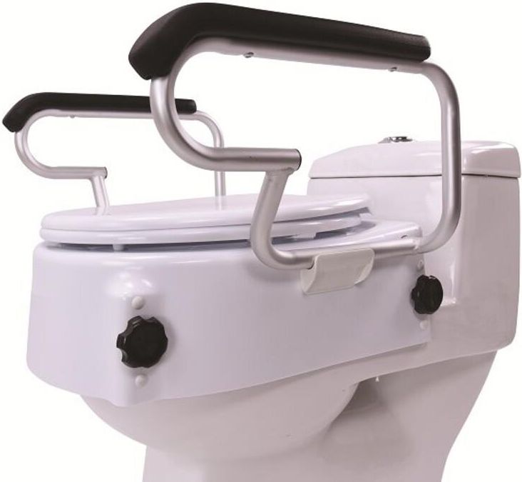 Nasadki toaletowe z pokrywą i poręczami AT51204 przeznaczone są dla osób z artretyzmem, osób po operacji biodra, oraz innych, które mają problemy z przemieszczaniem się, wstawaniem i siadaniem. Nasadka posiada nowoczesny system mocowań, umożliwiający łatwe jej ustabilizowanie na toalecie. Charakterystyka produktu: -bezpieczne mocowanie do toalety na dokręcane zaciski (stabilniejsza niż na clipery) - montaż nie wymaga narzędzi -wyposażona w odchylane rączki ułatwiające osobie niepełnosprawnej wstanie z toalety -nakładka pasuje do większości sedesów, posiada także 3 stopnie regulacji wysokości Dane techniczne Całkowita wys. (cm): 37-59 (z podniesioną deską) cm Wymiary, szer. x dł.(cm): 40(nasadka)/57 (z podłokietnikami) x 46 Regulowana wys. siedziska (cm): 6,10,14 Szerokość pomiędzy górną częścią podłokietników (cm): 47 Waga wyrobu: 4,2 kg Waga użytkownika i maksymalne obciążenie nie może przekraczać: 180 kg