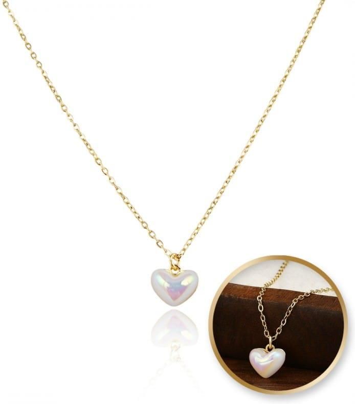 Naszyjnik stal szlachetna pozłacana 14k złotem, SERCE masa perłowa NST2170 Łódź