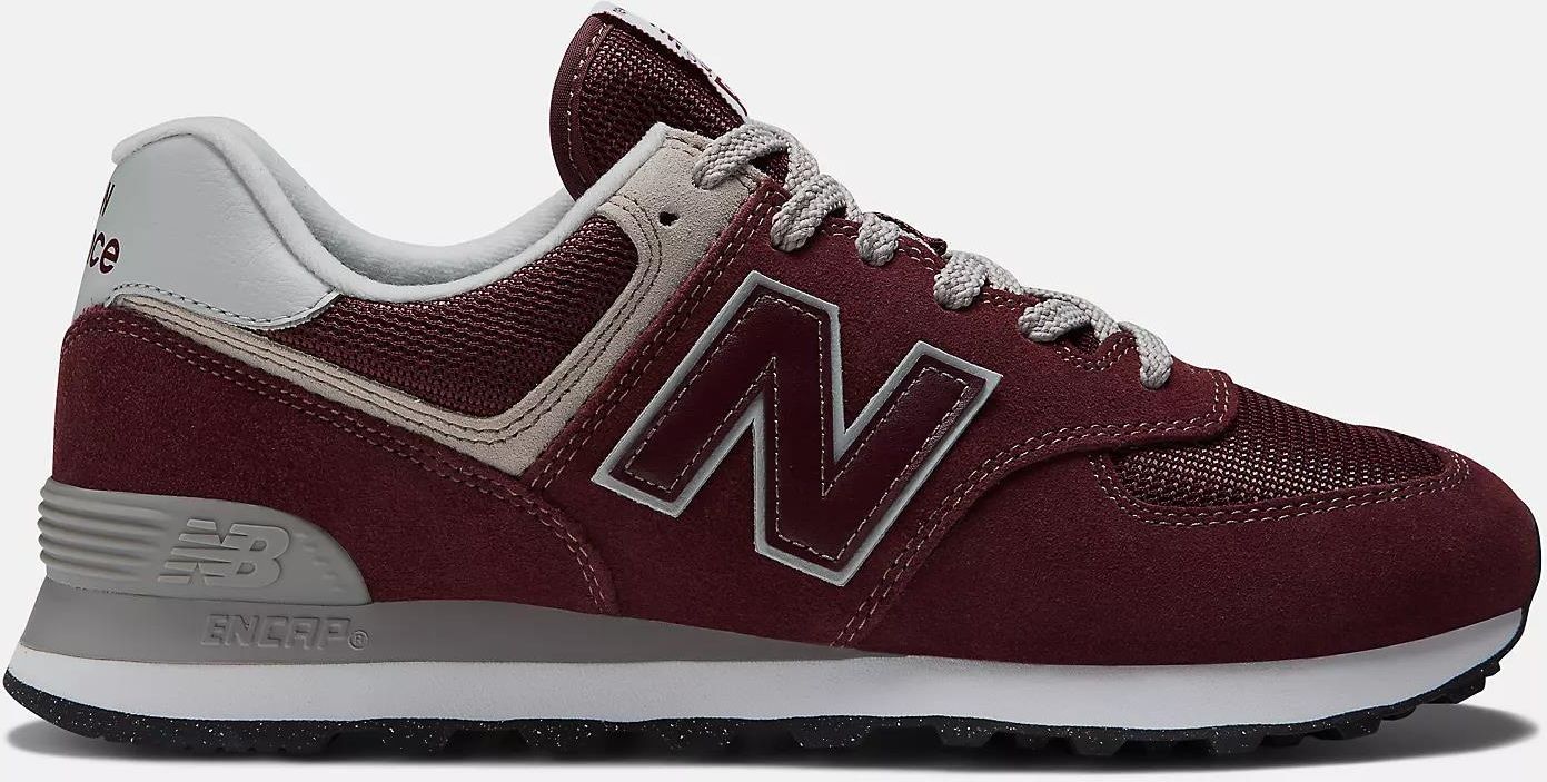 New Balance buty męskie sportowe ML574EVM rozmiar 46,5 Cholewka tego obuwia została wykonana ze skóry zamszowej, materiałów syntetycznych oraz oddychającej siateczki. Podeszwę środkową wyposażono w technologię ENCAP, która stanowi połączenie trwałego i stabilnego brzegu poliuretanowego i miękkiej, amortyzującej warstwy z pianki EVA. Gumowa, bieżnikowana podeszwa zewnętrzna daje gwarancję doskonałej przyczepności do podłoża. Całość dopełnia logo producenta. Klasyczne sneakersy męskie sprawdzą się w codziennym użytkowaniu i będą pasować do wielu stylizacji. Model ten świetnie dopełni męskie koszulki. Rodzaj: Obuwie, Sneakersy Kolor: bordowy Cholewka: skóra zamszowa, materiał syntetyczny, siateczka