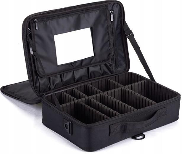 Kosmetyczka Organizer Kuferek Pojemna Torba na Kosmetyki z Przegrodami Nobo Kids Kosmetyczka w formie kuferka to praktyczne i stylowe rozwiązanie do przechowywania oraz transportu kosmetyków. Zapewnia ochronę, porządek i łatwość dostępu podczas codziennych rytuałów pielęgnacyjnych i makijażowych. Wyposażona w liczne przegródki i kieszonki umożliwia uporządkowane przechowywanie różnorodnych kosmetyków, narzędzi do makijażu i pielęgnacji skóry. Charakterystyka Kosmetyczka została zaprojektowana z myślą o zapewnieniu wygodnego korzystania z kosmetyków. Posiada ruchome sztywne pionowe przegródki, które umożliwiają dostosowanie ich wielkości do własnych potrzeb. To zapewnia elastyczność i personalizację organizacji kosmetyków. Kosmetyczka zapinana jest na zamek błyskawiczny z dwóch stron, co pozwala na szybkie i bezpieczne otwieranie. Dodatkowo, u góry znajduje się praktyczna kieszeń, miejsce na pędzle. Na klapie, oddzielającej główną komorę, umieszczono lusterko o wymiarach 17,5 x 9 cm, które można wygodnie wyciągnąć z kieszonki. Kuferek wyposażony jest w praktyczny uchwyt ułatwiający przenoszenie lub trzymanie w ręku. Dodatkowo posiada regulowany pasek, co umożliwia noszenie kufra zarówno jako plecak, jak i torbę na ramię. Wykonana z materiałów, które łatwo można czyścić i utrzymywać w czystości. W razie potrzeby można ją wytrzeć wilgotną ściereczką lub umyć wodą i łagodnym detergentem, co ułatwia utrzymanie higieny przechowywanych kosmetyków. Kolor: czarny Materiał: Oxford, pianka Eva Wymiary: 40 (szer.) x 30 (gł.) x 13 (wys.) cm Waga: 1,360 g Gabaryt: B Producent: Nobo Kids Głębokość: 30 Szerokość: 40 Wysokość: 13
