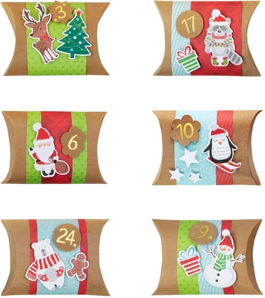 Kalendarz adwentowy pudełeczka do własnoręcznego złożenia i ozdobienia Party Pal Zestaw 24 szt. elementów do przygotowania kalendarza adwentowego. Pudełeczka 'poduszki' i elementy, którymi można je ozdobić, w które można włożyć własnoręcznie przygotowane niespodzianki - np. drobne słodkości …