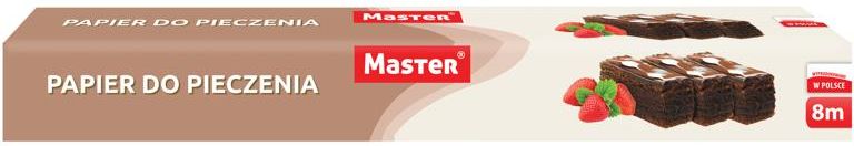 MASTER Papier do pieczenia kartonik 0,38x8m S142 Papier do pieczenia 8m MASTER S142 - doskonały do pieczenia ciast, pizzy, frytek, pasztecików - dwustronnie powlekany silikonem, co zapobiega przywieraniu potraw - umożliwia pieczenie bez konieczności natłuszczania blachy - można stosować w tradycyjnych piekarnikach oraz w kuchenkach mikrofalowych - używany jako przekładka pozwala bez trudu rozdzielać głęboko zmrożone produkty https://upload.cdn.baselinker.com/products/3015590/2389ad47b6eb10b1f07a6c071cd01359.jpg