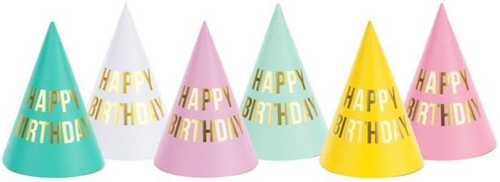 Party Deco Czapeczki Happy Birthday Pastel Mix 6Szt Łódź