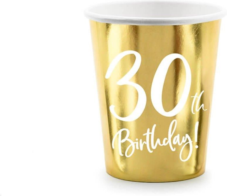 Party Deco Kubeczki Na Trzydzieste Urodziny 30H Birthday! Złote 220Ml 6Szt Łódź