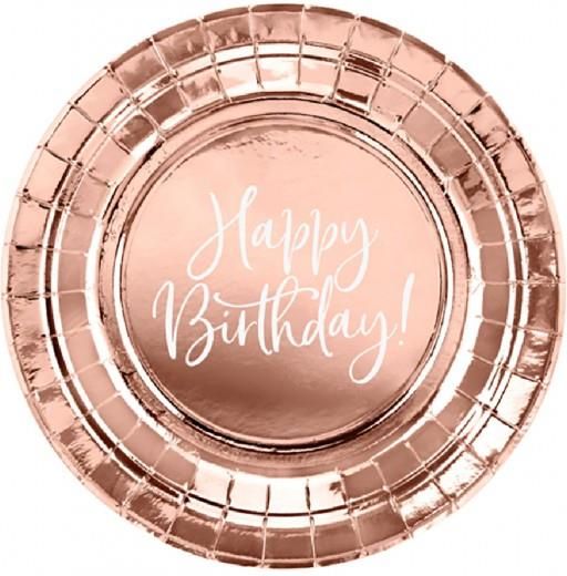 Partydeco Talerzyki Happy Birthday! Różowe Złoto 6Szt Łódź