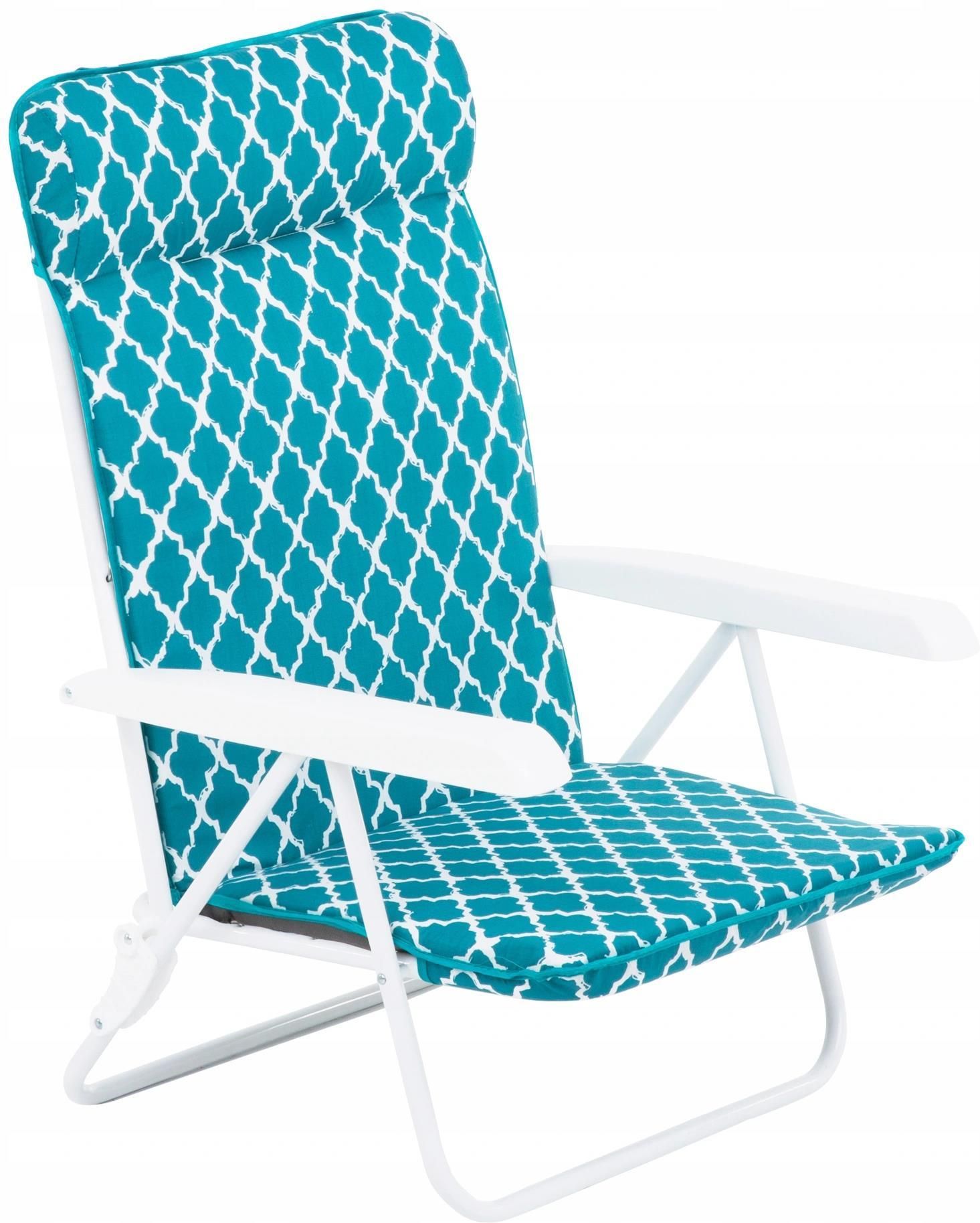 462202 Fotel plażowy składany Patio Fotel plażowy 28-pozycyjny z poduszką w deseniu H030-21PB - doskonały na plażę lub camping, idealny do wypoczynku na łonie natury. Stalowy stelaż zapewnia jego niezwykle łatwe składanie i rozkładanie. Leżak po złożeniu zajmuje bardzo mało miejsca, co zdecydowanie ułatwia jego transportowanie.. Stelaż z oparciem kwadratowym, konstrukcja z rur stalowych o śr. 18 mm, malowany proszkowo. Profilowany zagłówek - wałek. Wierzch poduszki z tkaniny poliestrowo-bawełnianej, spód z polipropylenu, obszyta kolorową poliestrową lamówką. Rodzaj wypełnienia poduszki: pianka poliuretanowa o grubości 2,5 cm siedzisko i 2,5 / 5,5 cm oparcie.W górnej partii oparcia i w dolnej siedziska kieszeń umożliwiająca mocowanie do stelaża. Na oparciu poprzeczne przeszycie oddzielające zagłówek. Wypełnianie pianka poliuretanowa. Marka: Patio Długość [cm]: 61 Szerokość [cm]: 59 Wysokość [cm]: 84 Materiał: Bawełna,Poliester,Stal Funkcja: Bez podnóżka,Rozkładane Maksymalne obciążenie [kg]: 110.000000 Kolor: biały,niebieski Wzór: inny Skład materiałowy: Wierzch: 52% poliester, 48% bawełna Spód: 100% polipropylen