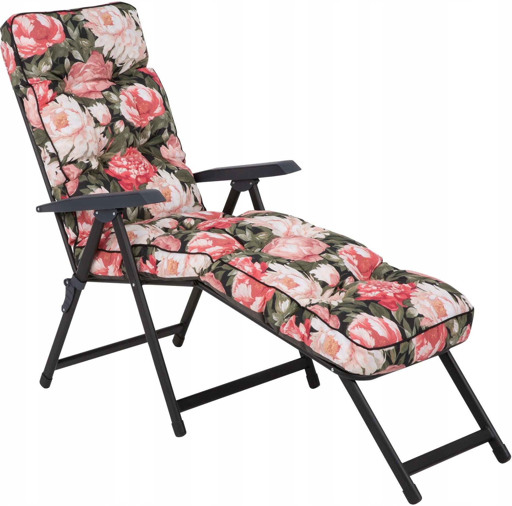 Leżak ogrodowy Black Edition kwiatowy – styl i komfort w Twoim ogrodzie Szukasz wygodnego i stylowego leżaka do swojego ogrodu? Model Black Edition w kwiatowy wzór to doskonałe połączenie estetyki i funkcjonalności. Komfortowa poduszka z motywem kwiatowym oraz solidny, stalowy stelaż zapewniają wygodę i trwałość, czyniąc go idealnym wyborem do relaksu na świeżym powietrzu. Matowy czarny stelaż: nowoczesne wykończenie i zwiększona odporność 28-stopniowa regulacja: możliwość ustawienia idealnej pozycji Pikowana poduszka: grube wypełnienie flocke gwarantujące komfort Solidna konstrukcja: stalowa rama zapewniająca stabilność Odporność na warunki atmosferyczne: trwałe materiały odporne na wilgoć Kompaktowe przechowywanie: po złożeniu zajmuje niewiele miejsca Idealny do relaksu w ogrodzie, na balkonie lub tarasie Łatwy w pielęgnacji, odporny na zabrudzenia Doskonale komponuje się z naturalnym otoczeniem Wybierz leżak Black Edition i ciesz się komfortem na świeżym powietrzu! Detale:Stelaż:Profil rur: owalny, spawany 36 x 18 mmWymiar po złożeniu: 60 x 25 x 98 cmWymiary rozłożonego produktu szer. 59 x gł. 142-188 x wys. 64-105 cmKolor: czarny matPoduszka:Wymiary: dł. 180 x szer. 48 x grub. 8 / 10 cmDodatkowe wymiary:Wysokość oparcia: 75 cmGłębokość siedziska: 48 cmGłębokość siedziska wraz z podnóżkiem: 102 cmSzerokość siedziska: 48 cmWysokość siedziska od podłoża: 45 cm