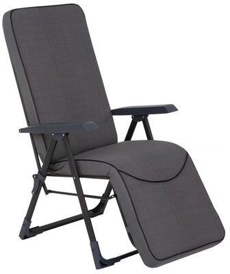 Rozkładany fotel z podnóżkiem w grafitowym kolorze to idealne rozwiązanie dla osób, które cenią sobie relaks w wygodnych warunkach. Wyposażony w zintegrowany podnóżek oraz poduszkę wykonaną z wytrzymałej polibawełny, zapewnia komfortowy wypoczynek zarówno w ogrodzie, jak i na balkonie czy tarasie.