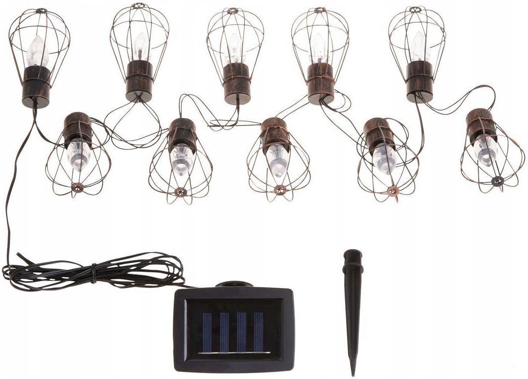 91320 Girlanda ogrodowa solarna 3,8 m koszyk PATIO Solarny łańcuch świetlny Marzysz o klimatycznym oświetleniu na tarasie lub w ogrodzie? Solarna girlanda LED to doskonałe rozwiązanie! Jej industrialny design z metalowymi kloszami i eleganckimi miedzianymi wstawkami doda przestrzeni wyjątkowego …