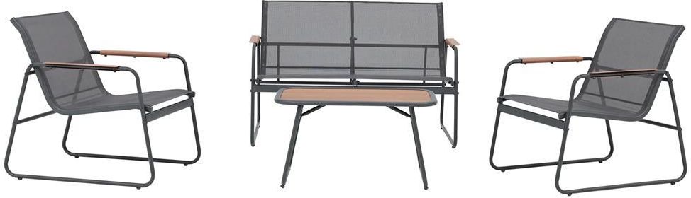 Komplet mebli ogrodowych Harlem Elegancki i wytrzymały zestaw mebli ogrodowych, który doskonale sprawdzi się na tarasie, balkonie czy w ogrodzie. Konstrukcja z malowanej proszkowo stali zapewnia stabilność, a elementy z tworzywa kompozytowego gwarantują trwałość i łatwość w pielęgnacji. Najważniejsze cechy: Nowoczesny design – minimalistyczna forma pasująca do każdej aranżacji Komfortowe siedziska z przewiewnej siatki Podłokietniki z efektem drewna dla dodatkowej elegancji Wytrzymały stolik z blatem z tworzywa kompozytowego Łatwy w pielęgnacji – szybkie czyszczenie i odporność na warunki zewnętrzne Detale: Dwuosobowa sofa: 74 x 115 x 75,5 cm (maksymalne łączne obciążenie: 220 kg) Fotele: 74 x 61,5 x 75,5 cm (maksymalne obciążenie: 110 kg) Stolik: 44,5 x 75 x 41 cm (maksymalne obciążenie: 30 kg)
